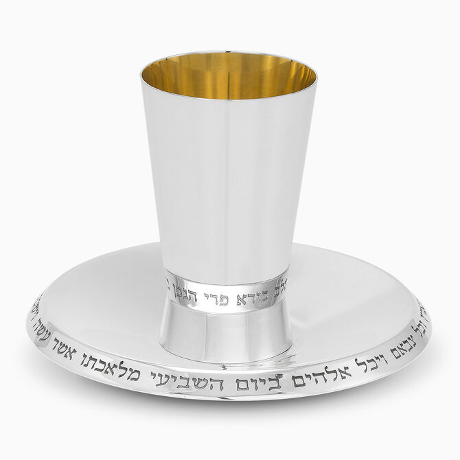 כששולחן השבת ערוך ומוכן, בוהק לאור הנרות סט גביע וצלחת מבית הצורפים. כענבי הגפן, כך גביעי הכסף הטהור עם צלחת הכסף המעוצבת משתלבים באופן מושלם. אמני הצורפים לקחו השראה ממגוון סגנונות ותרבויות ויצרו שידוכים מופלאים. העיטורים והחריטות העוטפים את הגביעים והצלחות נוצרו בעבודת יד מיומנת של אמן. כל גביע וכל צלחת נעשים במיומנות גבוהה ובהקפדה רבה. אתם מוזמנים לבחור את השידוך המושלם עבורכם ולהאיר את שולחן השבת בסט גביע וצלחת של הצורפים. 20132-0410
